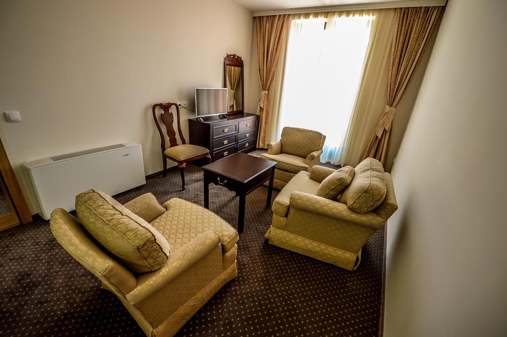 Elegantno i udobno uređene sobe sa besplatnim brzim bežicnim internetom su klimatizovane, LCD TV sa kablovskim kanalima, mini barom, sefom i sopstvenim kupatilom. Od ostalih pogodnosti na raspolaganju Apartman ima na spoljašnji bazen i otovoren aqua park, dok sobe na 0 spratu imaju terasu koja se nalazi tik uz spoljašnji bazen. Size: – 38m2